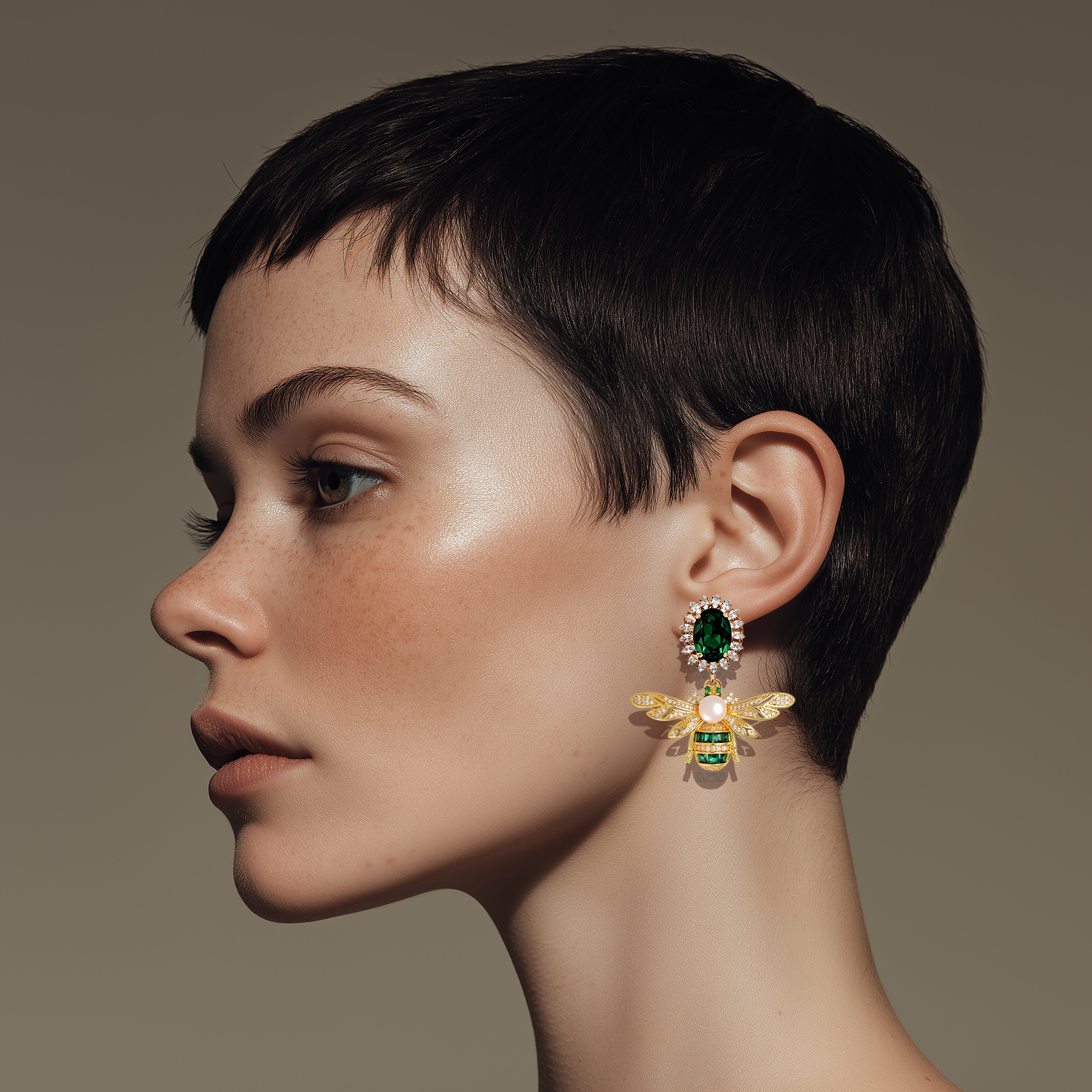 Golden wasp earrings with emerald top and pearl detail - Anton Heunis